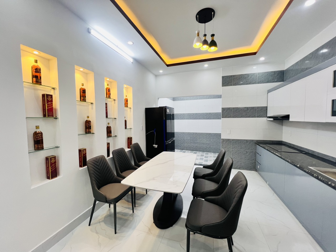 - Nội thất trang bị gồm có: Các thiết bị vệ sinh, chậu rửa mặt, tủ kệ bếp , bình nóng lạnh, téc nước dự phòng, hệ thống đèn LED, đèn điện, trần thạch cao, đèn thả quạt, đèn chùm mẫu mã siêu bắt mắt ...khung tranh cực nổi bật ....
