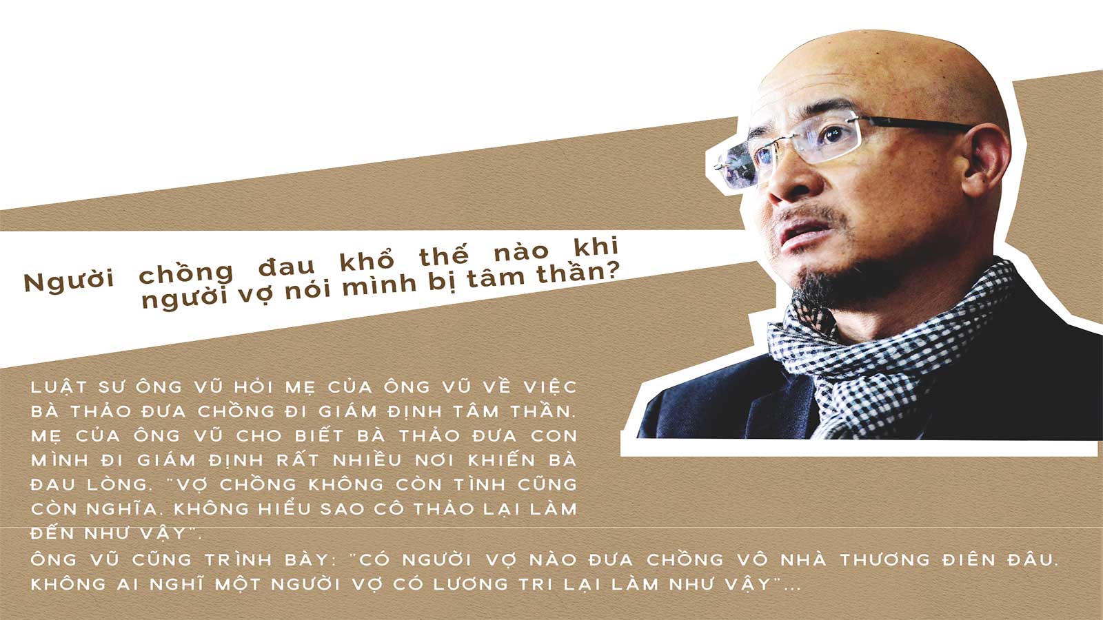 Bà Thảo: “Trước khi quyết định đưa nhau ra tòa, trong 3 năm 3 tháng, tôi không dưới 10 lần năn nỉ đưa giải pháp có thể để anh Vũ đồng ý trở về, gia đình có thể đoàn tụ. Tuy nhiên, tôi đành bất lực. Anh Vũ muốn mọi chuyện trở về như cũ, tôi sẵn sàng tha thứ hết. Anh hãy để cho các con có quyền gìn giữ sản nghiệp của gia đình cũng như tiếp nối con đường mà anh mong muốn cho tương lai”.